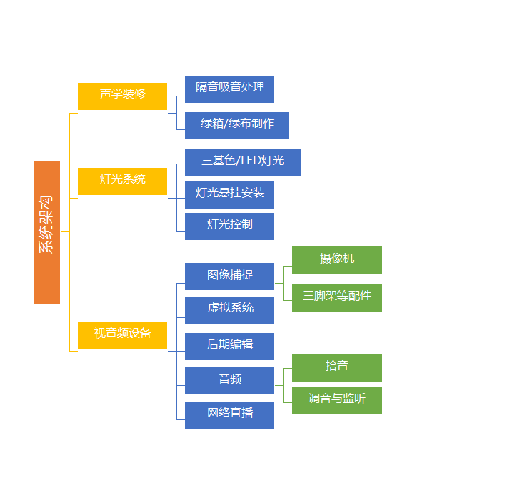 本演播室节目形式采用节目形式采用 4K 虚拟方式,辅以配套设备,视频切换编辑设备,音频设备,网络直播设备及其它周边产品,搭建了一套高清数字信号的数字视频制作直播系统。