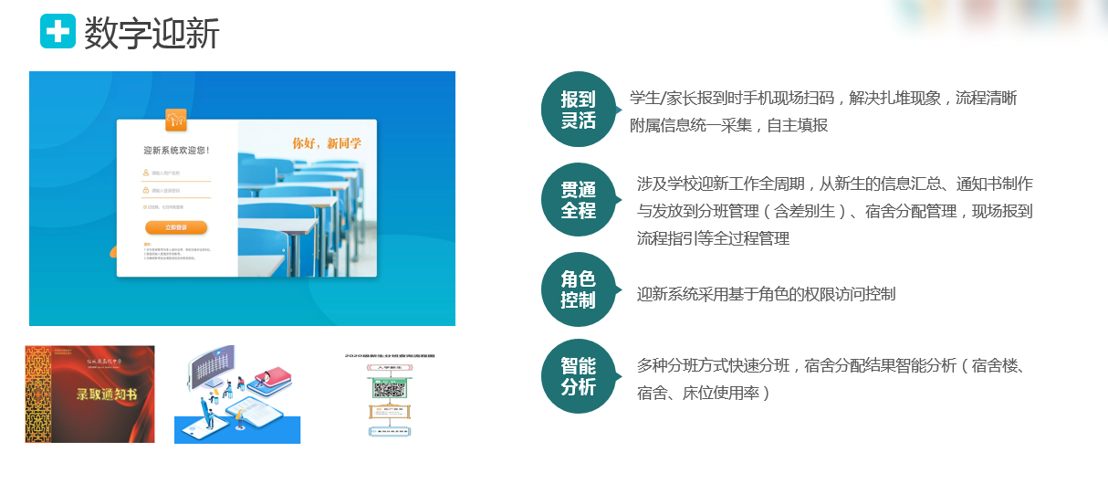 数字迎新是数字化校园建设中衍生出的一项重要功能应用,它的出现能够使校园迎新流程更加高效,借助信息化、数字化技术,基于校园网络布局,将以往复杂的迎新环节进行整合,以更科技化、时尚化的方式推动学校的迎新工作。