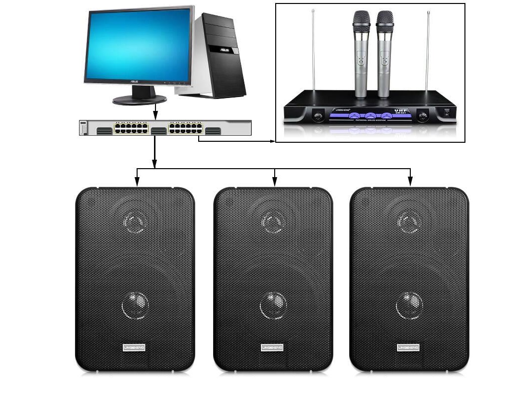 此方案采用当今世界广泛使用的TCP/IP网络技术, 将音频信号以标准IP包形式在局域网和广域网上进行传送,是一套纯数字传输的双向音频扩声系统。彻底解决了传统广播系统存在的音质不佳,维护管理复杂,缺乏互动性等问题。该系统设备使用简单,安装扩展方便,只需将音频终端接入计算机网络即可构成功能强大的数字化广播系统,每个接入点无需单独布线,真正实现计算机网络、数字视频监控、公共广播的多网合一。